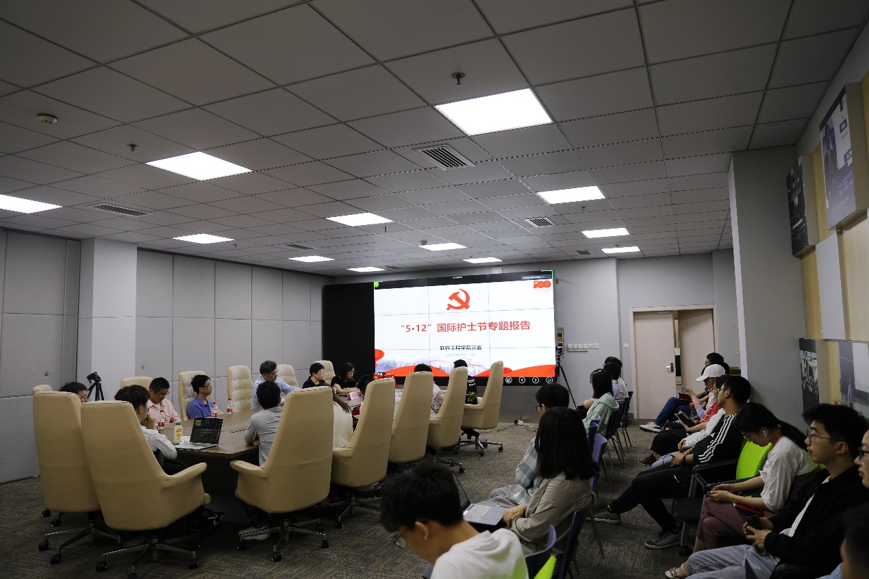 5月11日,为迎接国际护士节、号召全院师生向抗击新冠疫情中的党员同志学习,bat365中文官网入口党委召开党委中心组学习扩大会暨教职工政治理论学习会议,邀请2020年全国先进工作者、上海市交通大学医学院附属瑞金医院感染科主管护师崔洁作《平凡中的大爱》主题报告,讲述援鄂经历。本次活动以线上线下结合的方式展开。学院党政领导班子及包括第十九期学生入党积极分子培训班和第六期学生发展对象培训班学员在内的全体师生党员聆听了报告。