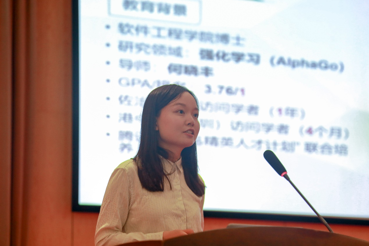 在主持人宣读了答辩要求和评分规则后,各位候选人按抽签顺序进行个人展示及现场答辩。伴随着每一位候选人的现场展示,观众席中不时爆发出热烈的掌声、欢呼声,在场的评委也被候选人们丰硕的科技创新成果、自信从容的答辩风采深深打动。在个人风采展示之后的答辩环节,每位候选人还与在场评委进行了深入交流。