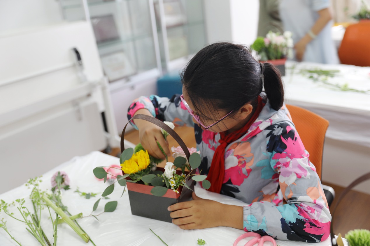 在花艺师的指导下,学院教师和孩子们充分发挥想象,根据一定的构思来选择花材,遵循一定的创作法则,插成一个个优美的造型。在制作过程中,大家在花卉的芳香和美妙中体会到创作的乐趣,感受着艺术的风采,更提高了感受美、欣赏美的水平。在忙碌的工作和学习之余,感受到了一份宁静和舒心。