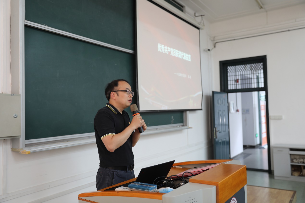 表彰会后,来自校马克思主义学院的曹景文教授作主题为《中国共产党为什么诞生在上海》的报告。他分别从近代中国工人阶级的聚集地、近代新型知识分子的聚集地、马克思主义在中国的传播起点、近代中国政治控制的边缘地带、苏俄和共产国际的选择、中国共产党发起组所作的卓越贡献等六大方面分析了原因。他用深入浅出的语言、具体真实的历史事件为在场的党员们带来了一场生动的报告会。