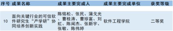 新的模式以培养具有“可信软件研发能力、跨领域解决问题能力和具有为国家解决‘卡脖子’难题家国情怀”的可信软件高端人才为宗旨,近六年为关键行业输送可信软件研究生1500余人,培训行业人才质量受到学术界、工业界和国际专家的高度认可,培养模式被国内多所兄弟院校借鉴并推广,人才培养成果被中央电视台等主流媒体深度报道,引发社会对可信软件人才培养的广泛关注。
