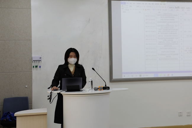 曹桂涛通报2021年度学院党费收缴情况,并结合《党支部工作记录本检查表》对党支部工作中存在的问题提出建议和意见。她提出,学生党支部要扎实推进支部生活规范化,围绕支部年度工作计划积极开展主题党日活动;要主动邀请学院党委委员指导支部生活,增进师生交流。2020级专业学位硕士研究生第一党支部书记陆欣彤分享本支部工作记录本要点和经验。