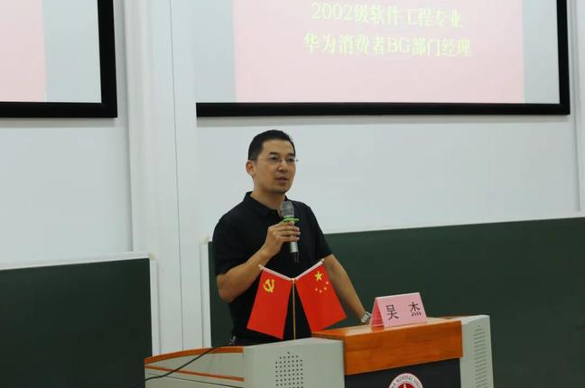 在时光的洗炼、时代的铿锵中,一代代华师大软件人继往开来,2002级软件工程专业、华为消费者BG部门经理吴杰作为院友代表,向学弟学妹们亲切寄语。吴杰院友回顾了自己在bat365在线平台官网bat365中文官网入口求学的旅程,在毕业求职交叉路口,他先选择了因特尔公司,又于2018年加入华为。在华为,他感受到浓烈的家国情怀,面对打压,难以获得一流的器件,就通过软件做一流的设计把器件发挥到极致,从编译器到上层应用,华为志在打造属于自己的生态。吴杰表示,专业知识与家国命运息息相关,希望大家多多支持民族产业,通过学习与实践磨炼沉淀并贡献自己的力量。