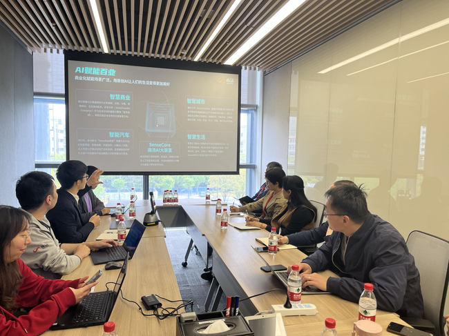 学院一行首先参观了商汤展厅。基于SenseCore,商汤科技开发具有模块化灵活性的标准软件平台,业务涵盖智慧商业、智慧城市、智慧生活、智能汽车四大板块,借助AI技术已深入拓展至多个领域,比如医疗、教育、出行、城市管理、娱乐等各个方面。再如智能汽车部分,商汤科技创建SenseAuto绝影智能汽车平台,通过智能车舱、量产智能驾驶、自动驾驶接驳及车路协同构成全栈体系,全面赋能国内外车企客户的智能化升级战略,满足人们出行需求。通过参观,学院一行对商汤科技产品以及服务领域有了更深入的了解与认识。