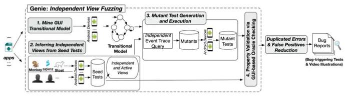 保证移动软件的功能正确性非常重要。功能正确性错误是一类影响软件功能正常使用的软件错误,一般不会以应用闪退/崩溃等形式展现,因此对此类错误的自动化测试难度很大,业界现有的解决方案是手工测试。为此,课题组独创性地提出了第一个全自动化的功能正确性测试技术Genie,该技术是第一个不受限于特定软件功能、不依赖于用户提供测试脚本的高自动化测试技术。