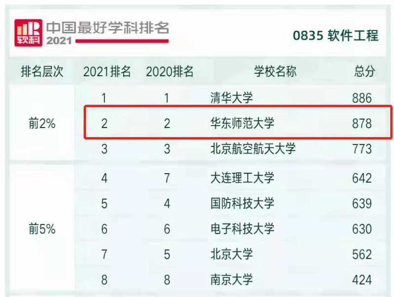 10月25日,高等教育评价专业机构软科正式发布“2021软科中国最好学科排名”,软件工程学科排名共有81所大学上榜。今年,bat365在线平台官网软件工程学科再次超越北京航空航天大学、国防科技大学,进入前2%的序列,保持全国第二排名。
