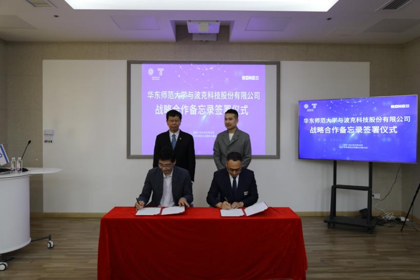 波克科技股份有限公司联合创始人、CEO徐仁彬也出席此次仪式,并表示将支持本项目的未来发展。学校党委常委、副校长顾红亮,波克科技股份有限公司党支部书记、副总经理刘忠生代表校企双方签署战略合作备忘录,将共建智能教育实验室,促进科研转化,并开展软件工程领域校企人才联合培养。钱旭红及徐仁彬见证签约。